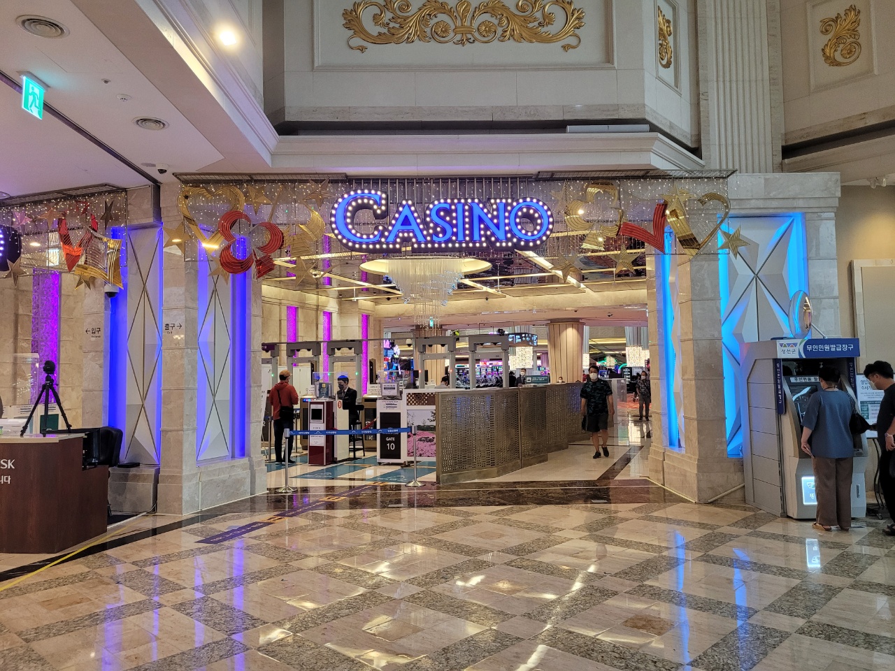 카지노 방문객에 대해 선제검사를 안내하고 있다. 요즘 카지노 하루 평균 방문객은 1천800명 수준이다.